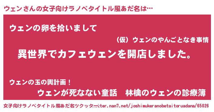 | 男性向けラノベタイトル風あだ名 | 『誰もが恐れるあのウェンが、ぼくの専属メイドになるようです。』 |