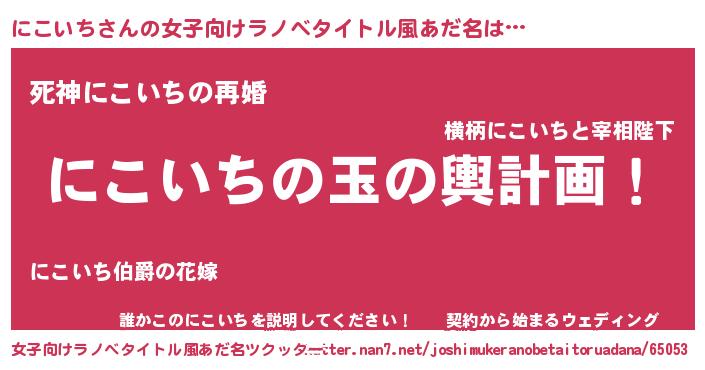 | ヒーロー風カッコイイあだ名 | 『慈愛の使者にこいち』『魔戒騎士ニコ』 |