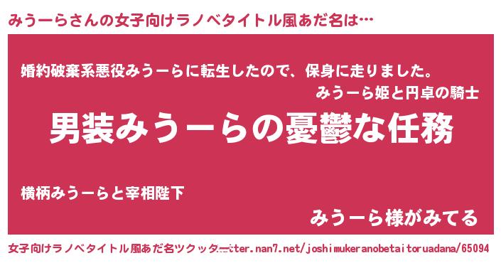 | ヒーロー風カッコイイあだ名 | 『炎刃騎士ミウ』『スーパーミウーラ』 |