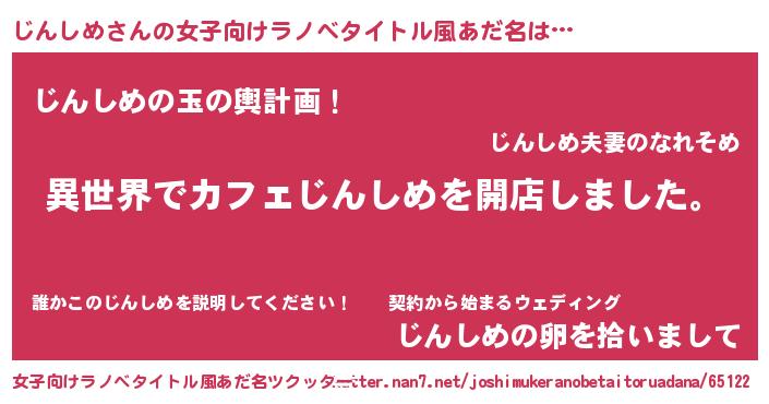 | 男性向けラノベタイトル風あだ名 | 『誰もが恐れるあのじんしめが、ぼくの専属メイドになるようです。』 |