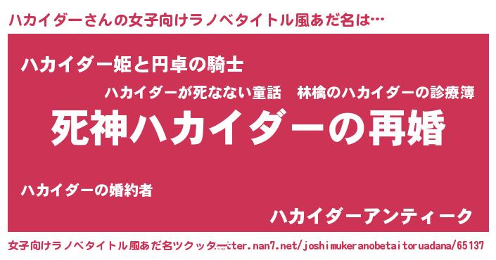 | 男性向けラノベタイトル風あだ名 | 『ノーゲーム・ノーハカイダー』 |