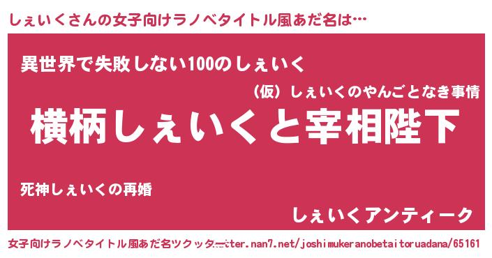 | 男性向けラノベタイトル風あだ名 | 『しぇいくに滅ぼされるだけの簡単なお仕事です』 |