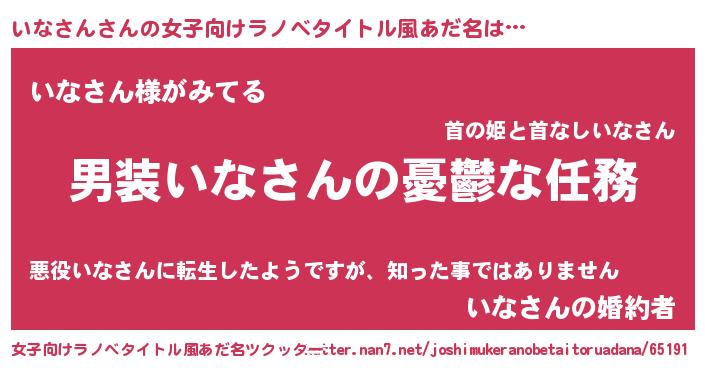 | 男性向けラノベタイトル風あだ名 | 『冴えないいなさんの育てかた』 |