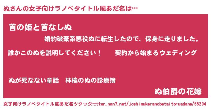| 男性向けラノベタイトル風あだ名 | 『ヌアートオンライン』『魔弾の王とぬ』 |