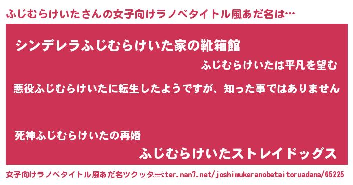 | 男性向けラノベタイトル風あだ名 | 『この素晴らしい世界にふじむらけいたを!』 |