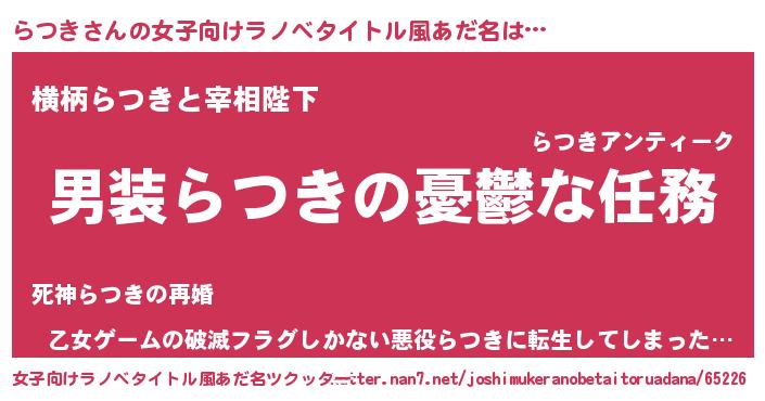 | ヒーロー風カッコイイあだ名 | 『仮面ラツダー』『最強戦士ラツキ』 |