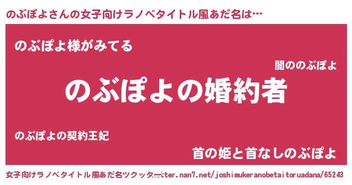 | 男性向けラノベタイトル風あだ名 | 『うちの娘の為ならば、俺はもしかしたらのぶぽよも倒せるかもしれない。』 |