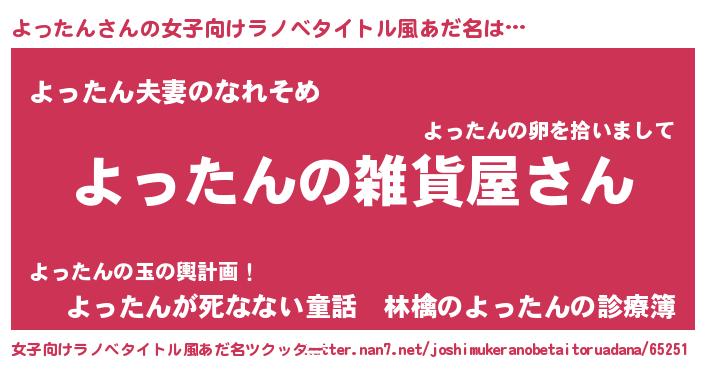 | 男性向けラノベタイトル風あだ名 | 『やはりよったんの青春ラブコメはまちがっている 』 |