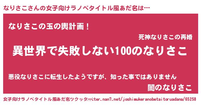 | 男性向けラノベタイトル風あだ名 | 『なりさこという概念が存在しない退屈な世界 』 |