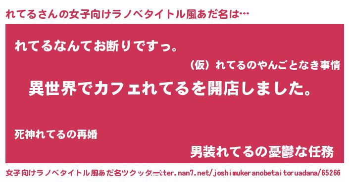 | 男性向けラノベタイトル風あだ名 | 『誰もが恐れるあのれてるが、ぼくの専属メイドになるようです。』 |