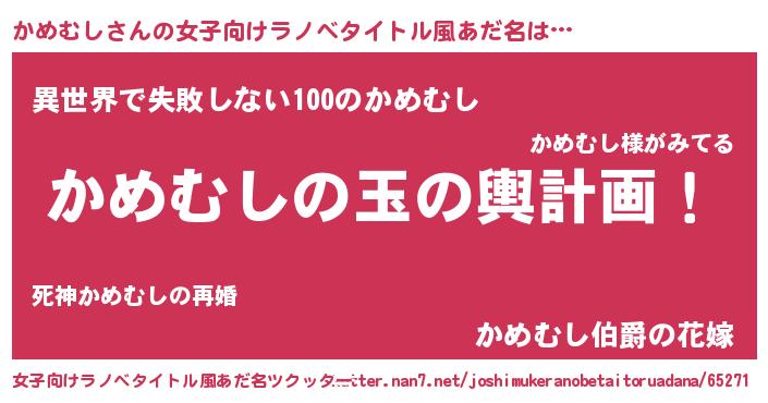 | ファンタジー風あだ名 | 『ユリカメヴァット』『カメディッシュ』 |