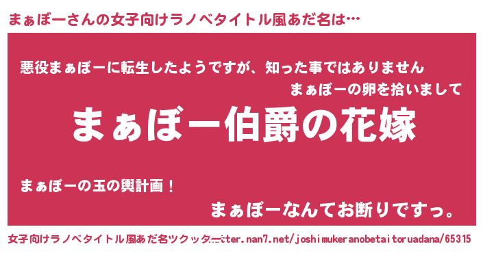 | 胡散臭い通販商品みたいなあだ名 | 『世界が平和になる高級そうな絵画…その名も「まぁぼー」』 |