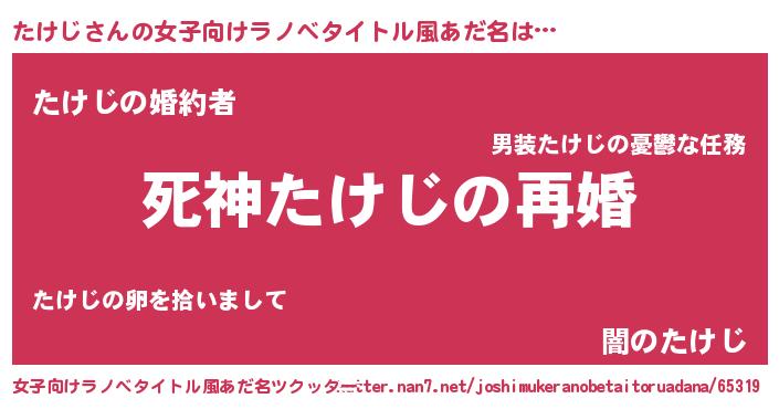 | ヒーロー風カッコイイあだ名 | 『天空の使者たけじ』『最強戦士タケジ』 |