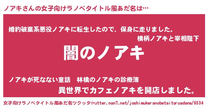 | ヘコむあだ名 | 『ノアキ(爆)』『ノアふぇ~』 |