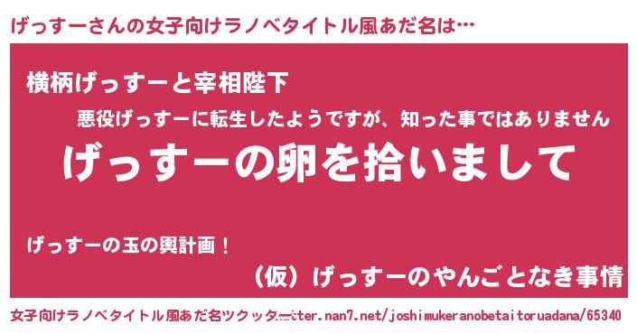 | 男性向けラノベタイトル風あだ名 | 『げっすーの嫁は女の子じゃないと思った?』 |