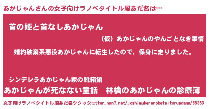 | 胡散臭い通販商品みたいなあだ名 | 『ハリウッド女優が絶賛した100年もののヴィンテージワイン…その名も「あかじゃん」』 |