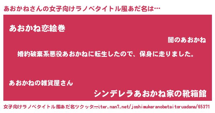 | 男性向けラノベタイトル風あだ名 | 『アオカネスレイヤー』 |