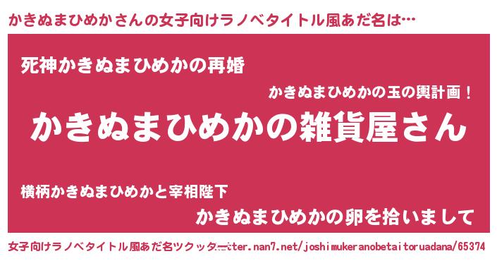 | 男性向けラノベタイトル風あだ名 | 『やはりかきぬまひめかの青春ラブコメはまちがっている 』 |