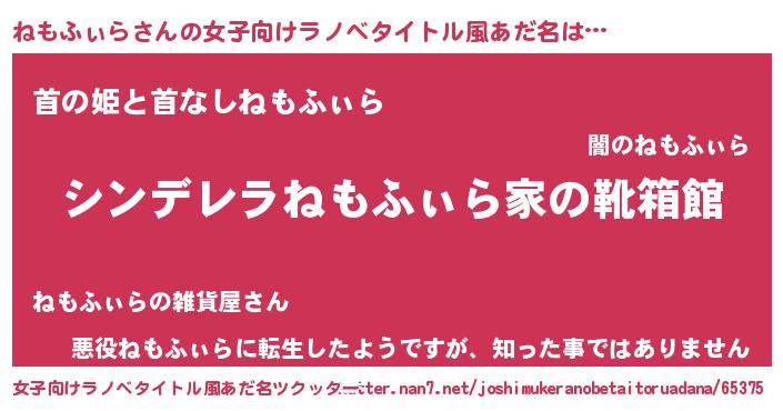 | 意味不明あだ名 | 『住所不定無職ねもふぃら(12歳)』 |