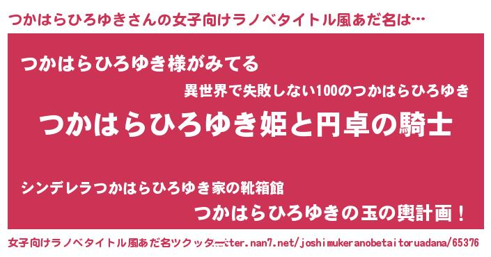 | 男性向けラノベタイトル風あだ名 | 『つかはらひろゆきの憂鬱』 |