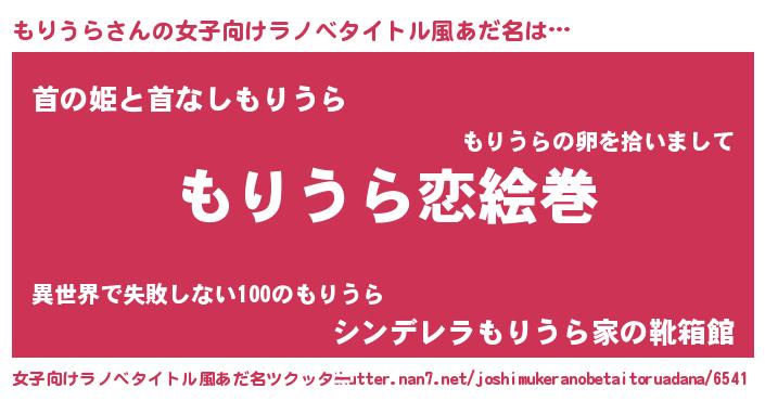 | ヒーロー風カッコイイあだ名 | 『慈愛の使者もりうら』『炎刃騎士モリ』 |