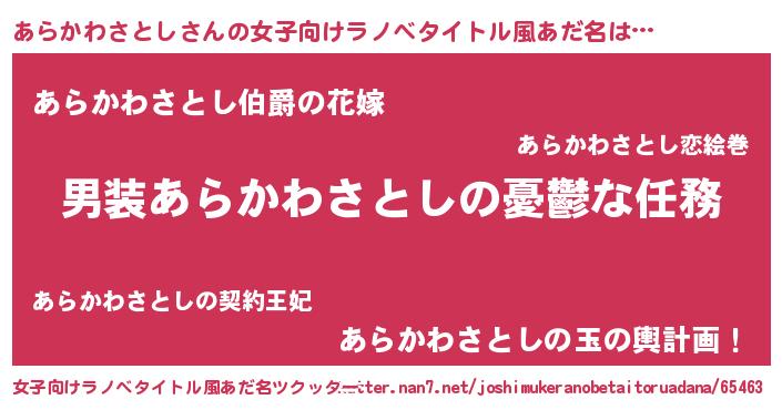 | 胡散臭い通販商品みたいなあだ名 | 『世界が平和になる高級そうな絵画…その名も「あらかわさとし」』 |