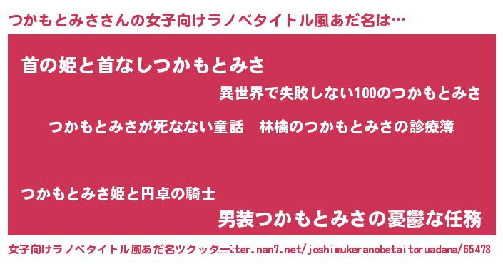 | 意味不明あだ名 | 『住所不定無職つかもとみさ(12歳)』 |