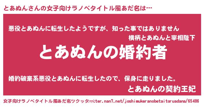| 胡散臭い通販商品みたいなあだ名 | 『運命の人と巡り会える高級そうな壺…その名も「とあぬん」』 |