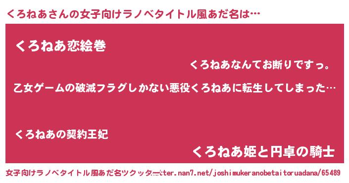 | 男性向けラノベタイトル風あだ名 | 『魔弾の王とくろねあ』『くろねあの憂鬱』 |
