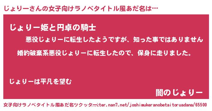 | 男性向けラノベタイトル風あだ名 | 『転生したらじょりーだった件』 |
