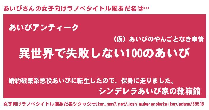 | 男性向けラノベタイトル風あだ名 | 『あいびという概念が存在しない退屈な世界 』 |