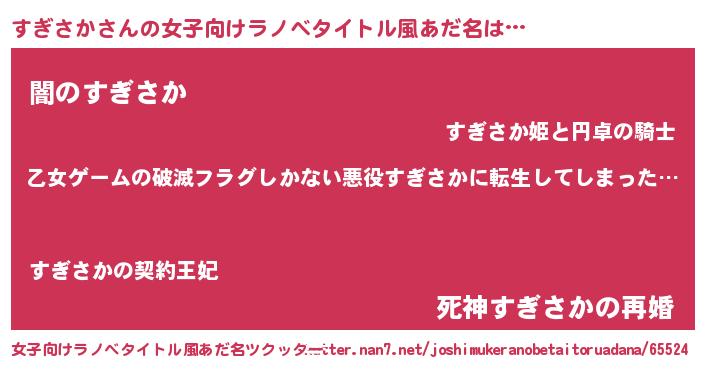 | 意味不明あだ名 | 『住所不定無職すぎさか(14歳)』 |