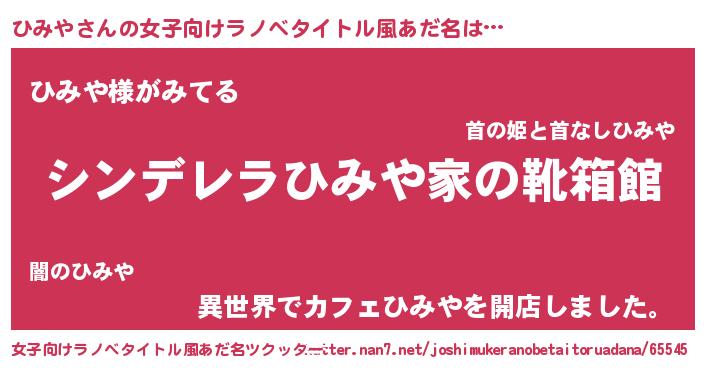 | 男性向けラノベタイトル風あだ名 | 『冴えないひみやの育てかた』 |