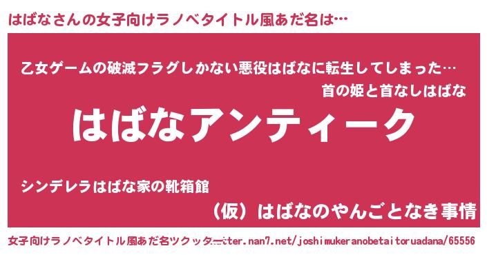 | 意味不明あだ名 | 『自称はばな』『住所不定無職はばな(3歳)』 |