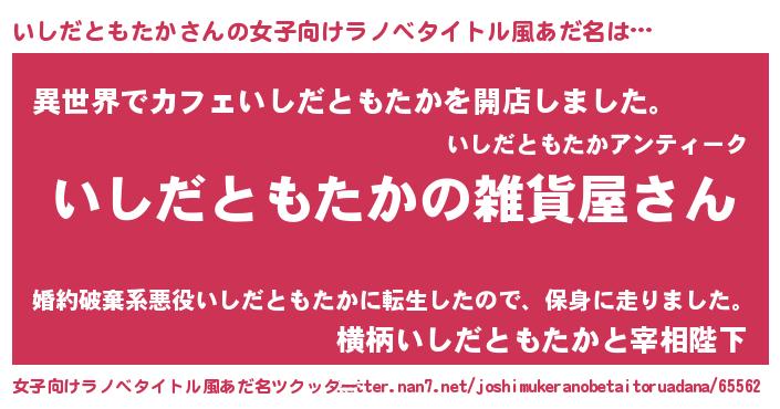 | 男性向けラノベタイトル風あだ名 | 『やはりいしだともたかの青春ラブコメはまちがっている 』 |