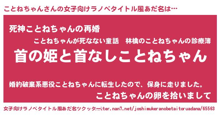 | 男性向けラノベタイトル風あだ名 | 『はたらくことねちゃんさま!』 |