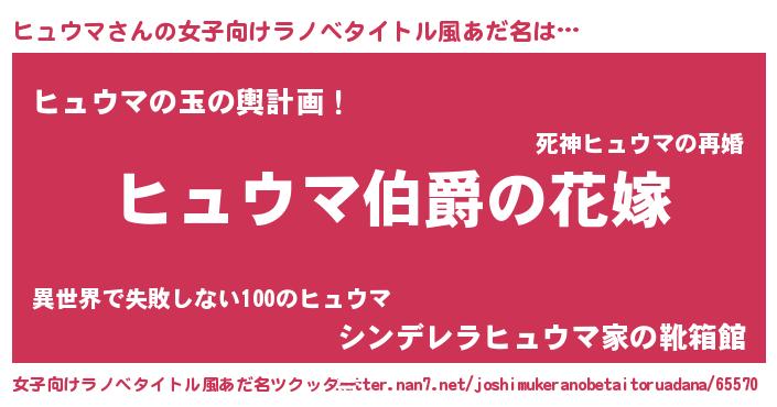 | 男性向けラノベタイトル風あだ名 | 『やはりヒュウマの青春ラブコメはまちがっている 』 |