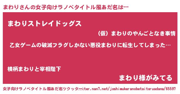 | 胡散臭い通販商品みたいなあだ名 | 『世界中を虜にした100年もののヴィンテージワイン…その名も「まわり」』 |