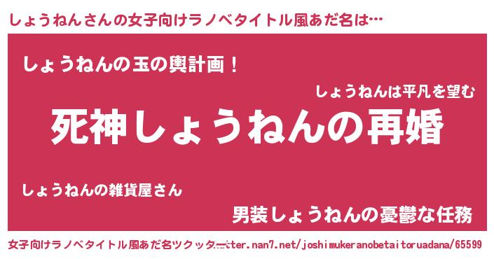 | 男性向けラノベタイトル風あだ名 | 『ノーゲーム・ノーショウネン』 |