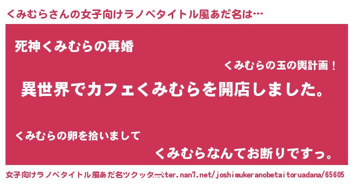 | 男性向けラノベタイトル風あだ名 | 『誰もが恐れるあのくみむらが、ぼくの専属メイドになるようです。』 |