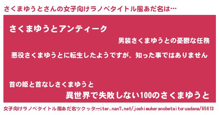 | 男性向けラノベタイトル風あだ名 | 『この素晴らしい世界にさくまゆうとを!』 |