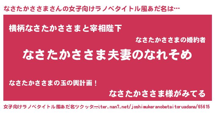 | 男性向けラノベタイトル風あだ名 | 『おまえをオタクにしてやるから、俺をなさたかささまにしてくれ! 』 |