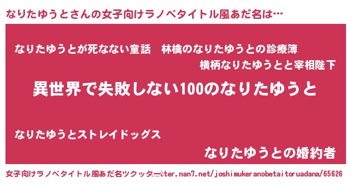 | 男性向けラノベタイトル風あだ名 | 『なりたゆうとという概念が存在しない退屈な世界 』 |