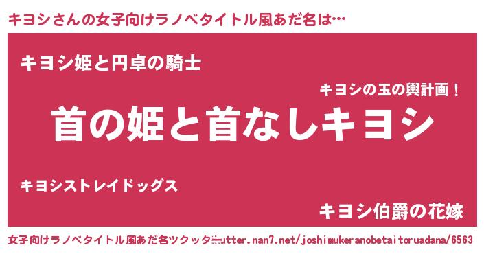 | 男性向けラノベタイトル風あだ名 | 『はたらくキヨシさま!』『キヨシの憂鬱』 |