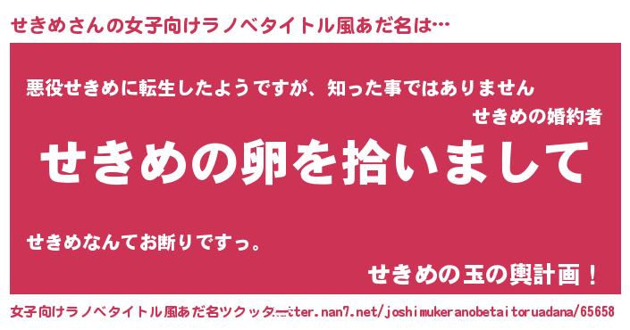 | 男性向けラノベタイトル風あだ名 | 『ダンジョンにせきめを求めるのは間違っているだろうか』 |