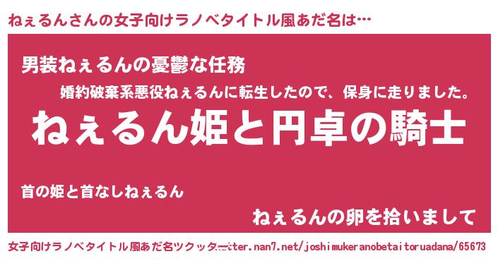 | 男性向けラノベタイトル風あだ名 | 『ねぇるんの憂鬱』 |