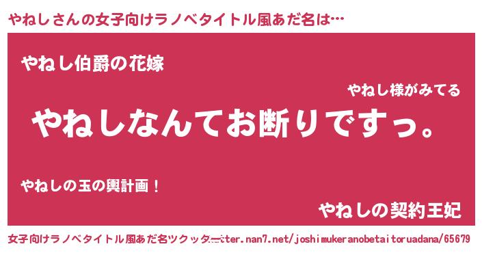| 男性向けラノベタイトル風あだ名 | 『魔法科高校のやねし』 |