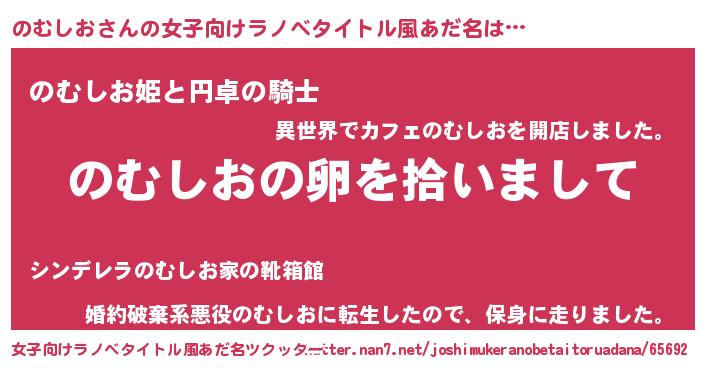 | 男性向けラノベタイトル風あだ名 | 『のむしおの嫁は女の子じゃないと思った?』 |