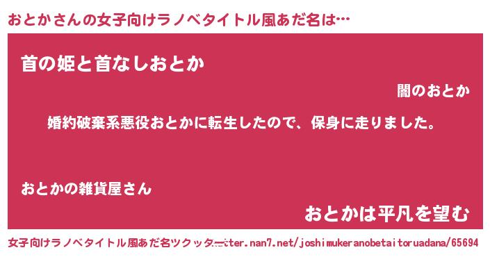 | 料理風あだ名 | 『おとかごはん』『栗とおとかのマフィン』 |