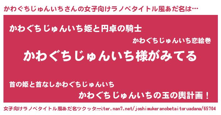 | 男性向けラノベタイトル風あだ名 | 『かわぐちじゅんいちの嫁は女の子じゃないと思った?』 |